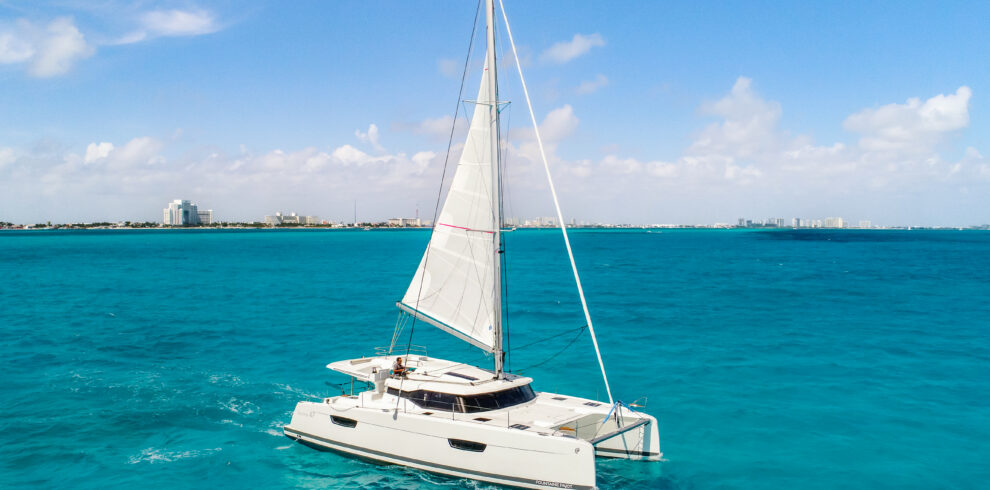 - Panoramic journey across the turquoise waters of the Mexican Caribbean on our elegant sailing catamarans.
